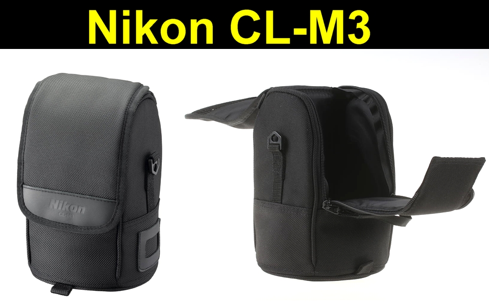 Polotuhé pouzdro Nikon CL-M3 z balistického nylonu s ochranným objektivem NIKKOR před prachem, vlhkostí a náhodným poškozením.