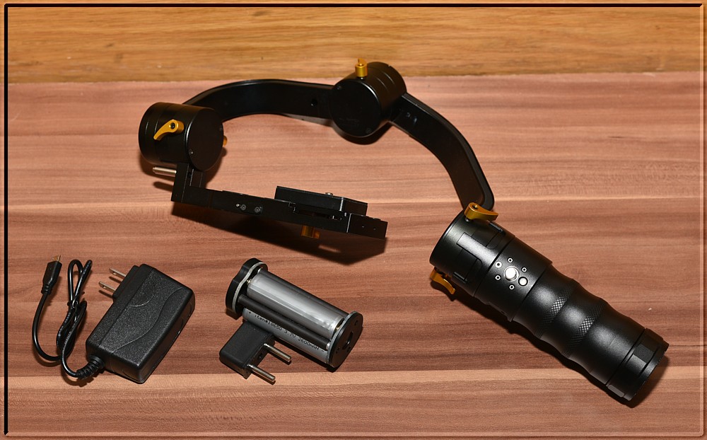 Součástí aukce je: Gimbal, baterie, nabíječka, bateriový držák, pouzdro... (1. fotka) .