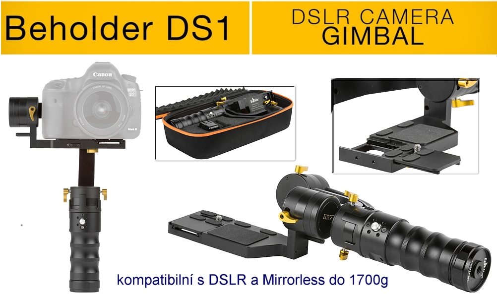 - IKAN DS1 Beholder je 3-osý Gimbálový stabilizátor určený pro většinu DSLR a kompaktu. Stabilizace probíhá ve třech osách motoru, které poskytují neuvěřitelně plynulý obraz natáčení z ruky, když při pohybu či situaci, kdy je kamera. DS1 má nosnost do 1,7 kg, vhodný pro širokou řadu kamer jako: Sony A7S, Panasonic GH4, Blackmagic Pocket Cinema Camera a Canon 5D Mark III.