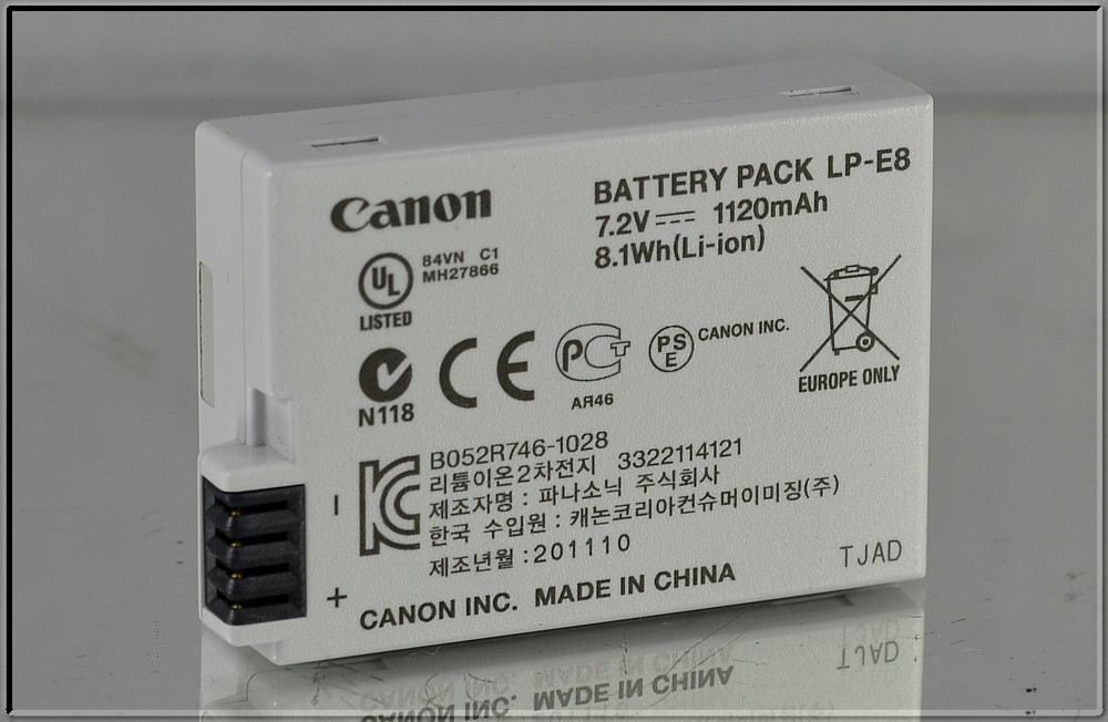 Součástí aukce je: Canon LP-E8 .