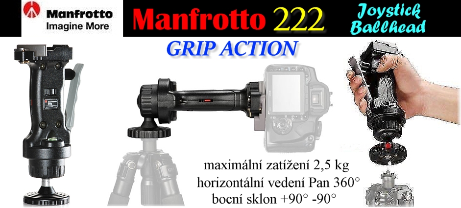 Kulová hlava s rukojetí: Manfrotto GRIP ACTION 222 **Joystic*Nosnost: 2,5kg**