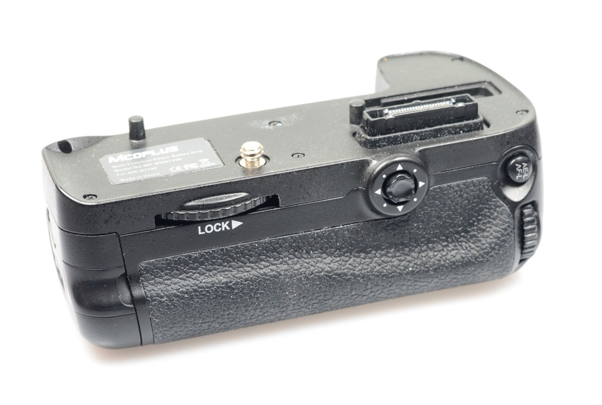 Nikon MP-BGD7100 Díky ergonomickému designu jsou možnosti snímání s vyšším akumulátorem a držením fotoaparátu je stabilnější. Je napájen buď jednou baterií EN-EL15, navíc je dalším příkazovým voličem, dalším tlačítkem spouště a zámkem autoexpozice/autofokusu, což umožňuje vyšší komfort při fotografování na výšku.