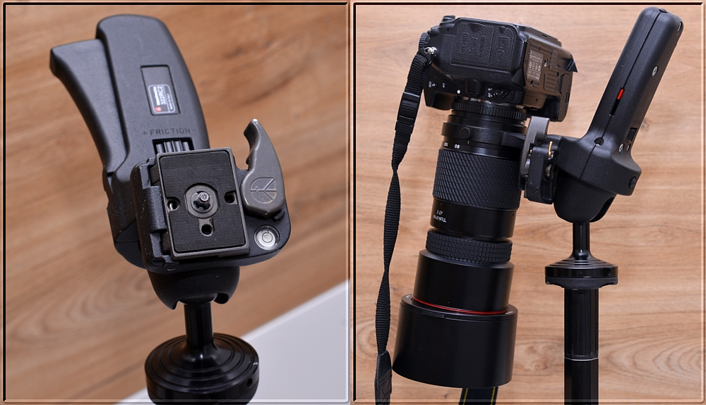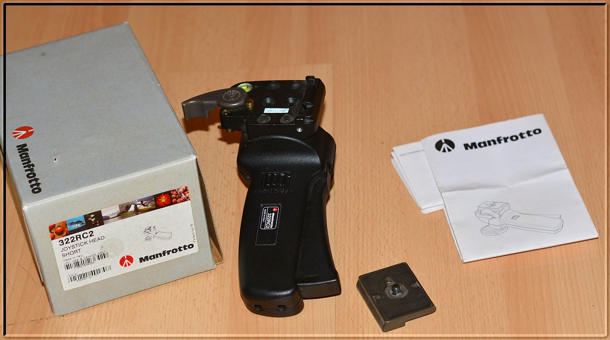 Součástí aukce je: Manfrotto 322RC25 hlava a Manfrotto MA 200PL-14 Rychloupínací destička.