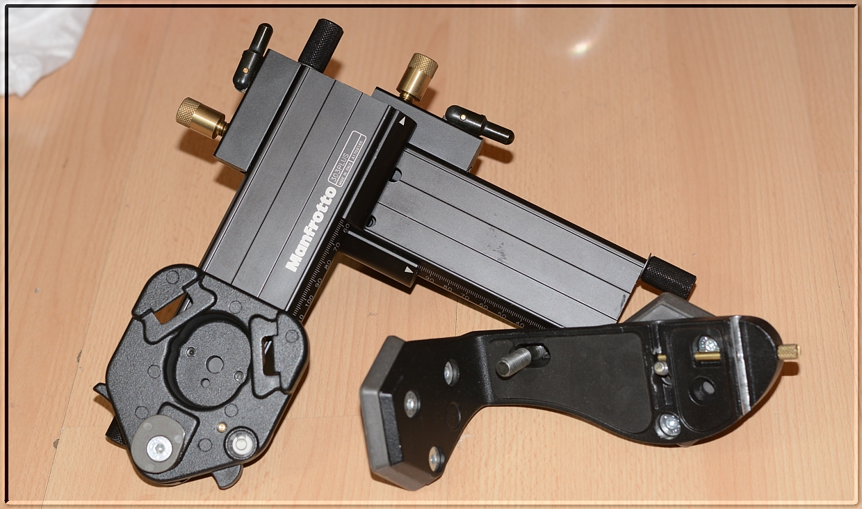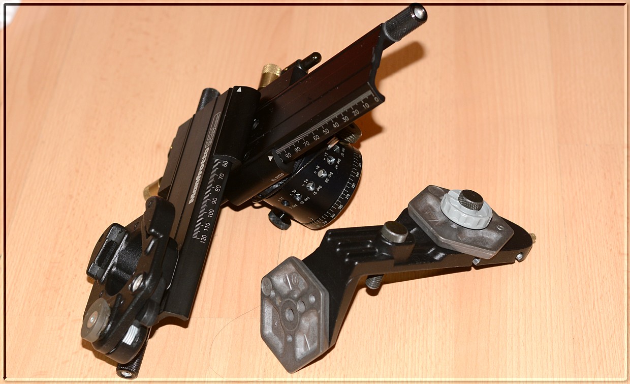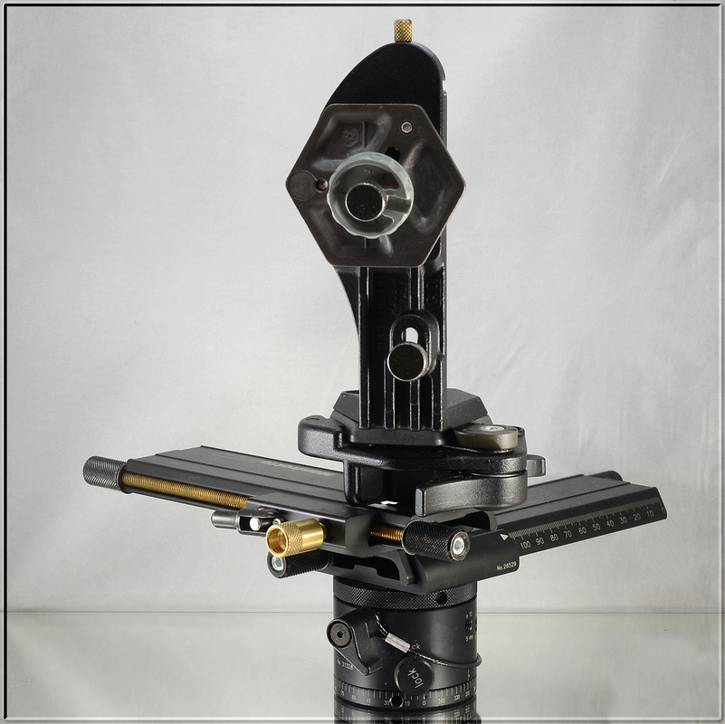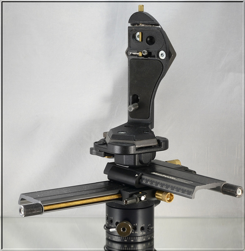 Na otočné základně jsou umístěné dva posuvníky, které jsou oproti sobě orientované v úhlu 90°. První posuvník (ten níže) slouží k přesnému nastavení fotoaparátu tak, aby osa otáčení procházela nodálním (uzlovým) bodem objektivu fotoaparátu. Tzn. první posuník slouží k posunování fotoaparátu a objektivu vpřed/vzad pro nastavení uzlového bodu do osy otáčení. Díky tomu se zcela eliminuje zkreslení paralaxy.