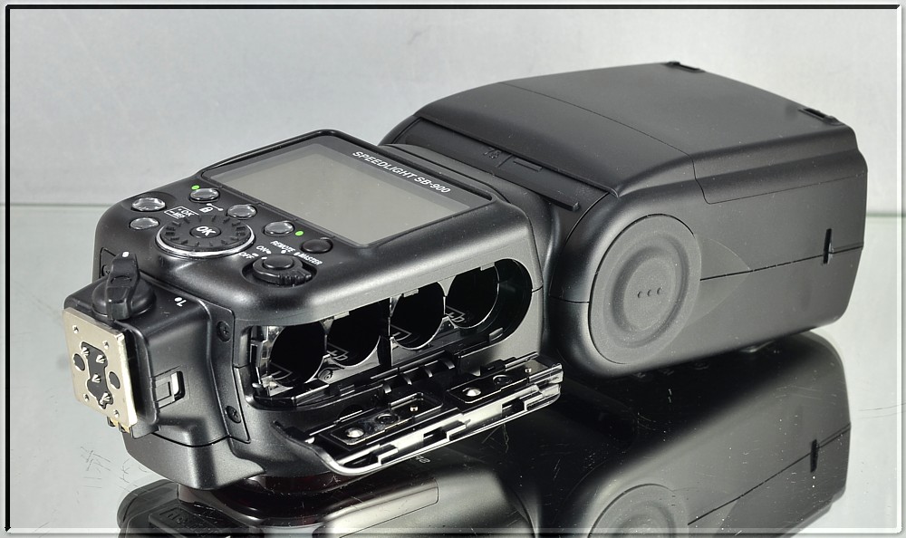 Další funkce a vlastnostiMezi pokročilé vybavení blesku patří obvody umožňující rychlé dobíjení blesku při použití čtyř tužkových baterií AA a vestavěný ochranný systém varující před nadměrným nárůstem teploty kritických částí blesku. Blesk SB-900 automaticky detekuje přítomnost barevného filtru pro zářivkové nebo žárovkové osvětlení a přenáší získanou informaci do těla použitého fotoaparátu pro optimální nastavení vyvážení bílé barvy. Blesk také umožňuje aktualizaci firmwaru prostřednictvím těla fotoaparátu.