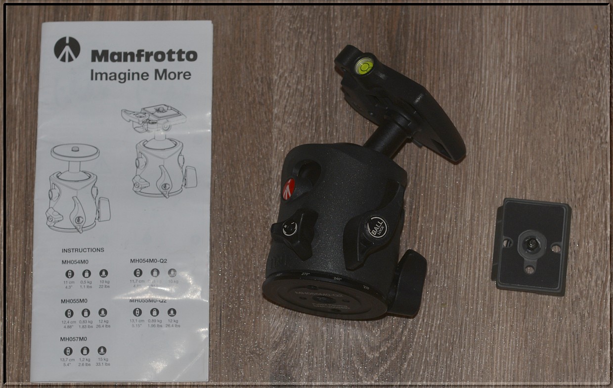 Součástí aukce je: Manfrotto MH055M0-Q2 hlava a 200PL-14 Rychloupínací destička. (1. Fotka)
