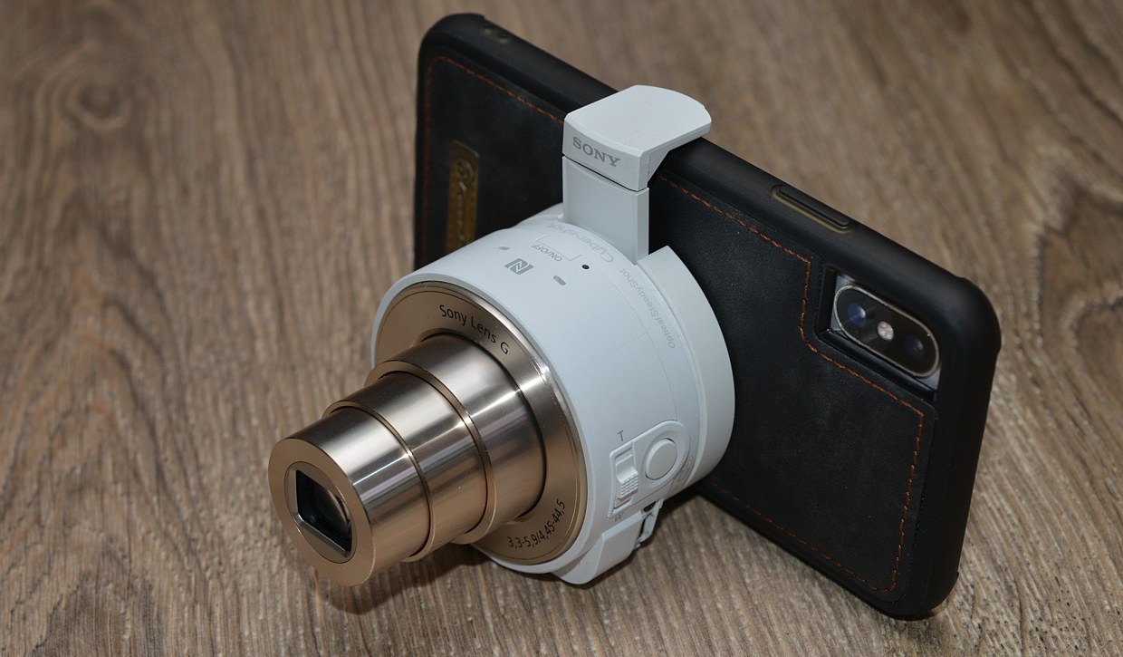 SONY DSC-QX10 – revoluční kompaktní fotoaparát postrádající vlastní LCD, který komunikuje s chytrými telefony prostřednictvím Wi-Fi a NFC. Při přiložení těla fotoaparátu, skládajícího se v podstatě pouze z objektivu, k telefonu, dochází k navázání spojení (NFC) a fotografovaná realita se zobrazuje na LCD telefonu. Při oddálení objektivu od telefonu, naváže spojení Wi-Fi. To umožňuje fotografovat z neobvyklých úhlů či odložení modulu na stabilní místo a vytváření časosběrných záběrů či videí v HD kvalitě. Modul SONY DSC-QX10 je vybavený 18 Mpx CMOS snímačem, procesorem BIONZ a širokoúhlým objektivem řady SONY G s 10× optickým zoomem. Příjemným faktem je optický stabilizátor obrazu SteadyShot.