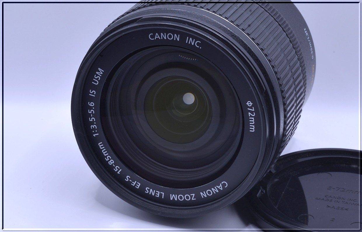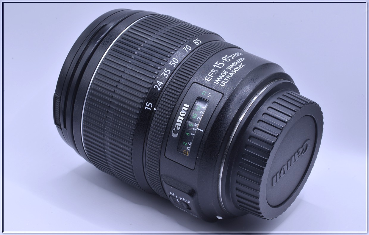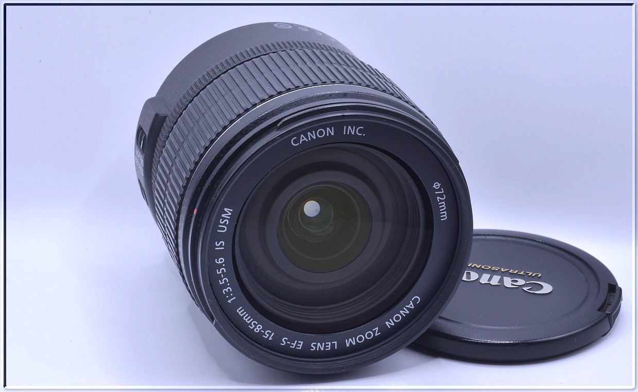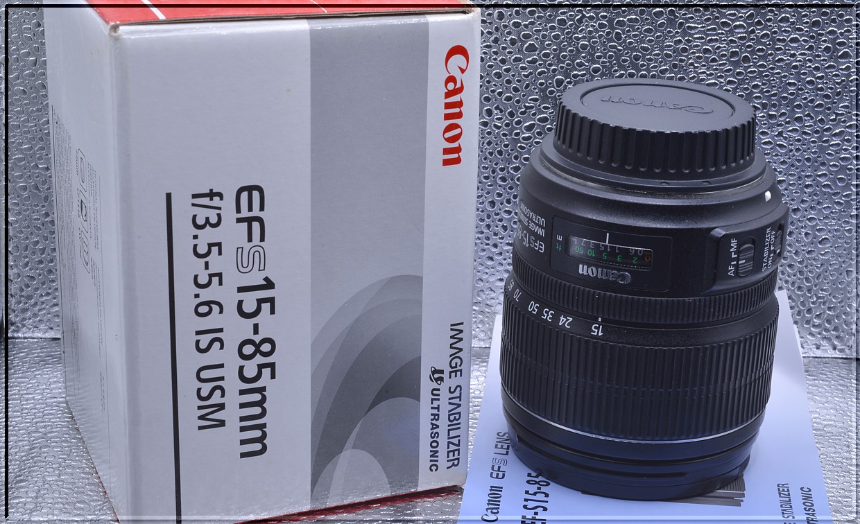 Canon EF-S 15-85 mm f/3.5-5.6 IS USM ve kterém je zkombinován široký rozsah zoomu od širokoúhlého objektivu po teleobjektiv, navíc s 4krokovým stabilizátorem obrazu, poskytuje mimořádný výkon a flexibilitu. Vysoce výkonný, víceúčelový 5,6násobný standardní zoom EF-S s ekvivalentní ohniskovou vzdáleností 24–136 mm