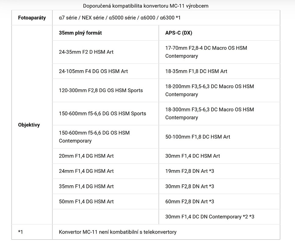 Adaptér Sigma MC-11 (Canon EF na Sony E) je kompatibilní s většinou