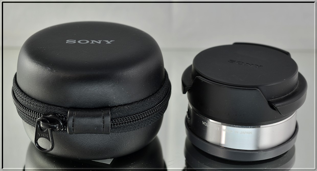 Součástí aukce je: Sony VCL-ECU1, obě víčka, Pouzdro.