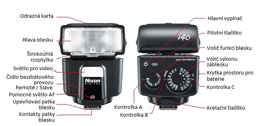 Blesk Nissin i40 kapesních rozměrů váží pouhých 203 g. Je vhodný pro vyjasnění stínů i za nejjasnějších slunečních dnů, pro rodinnou fotografii, fotografování v interiérech a exteriérech, a zejména pro cestování. K dispozici jsou profesionální funkce: bezdrátový režim Wireless TTL, podpora časů závěrky až do 1/8 000 s; směrné číslo 40 při ohniskové vzdálenosti 105 mm, světlo pro video s 9 nastavitelnými úrovněmi jasu, jednoduché ovládání pomocí dvou otočných voličů, výklopná a otočná hlava blesku pro všestrannější osvětlení nepřímým zábleskem a využití více úhlů osvětlení. Součástí dodávky blesku je softbox.