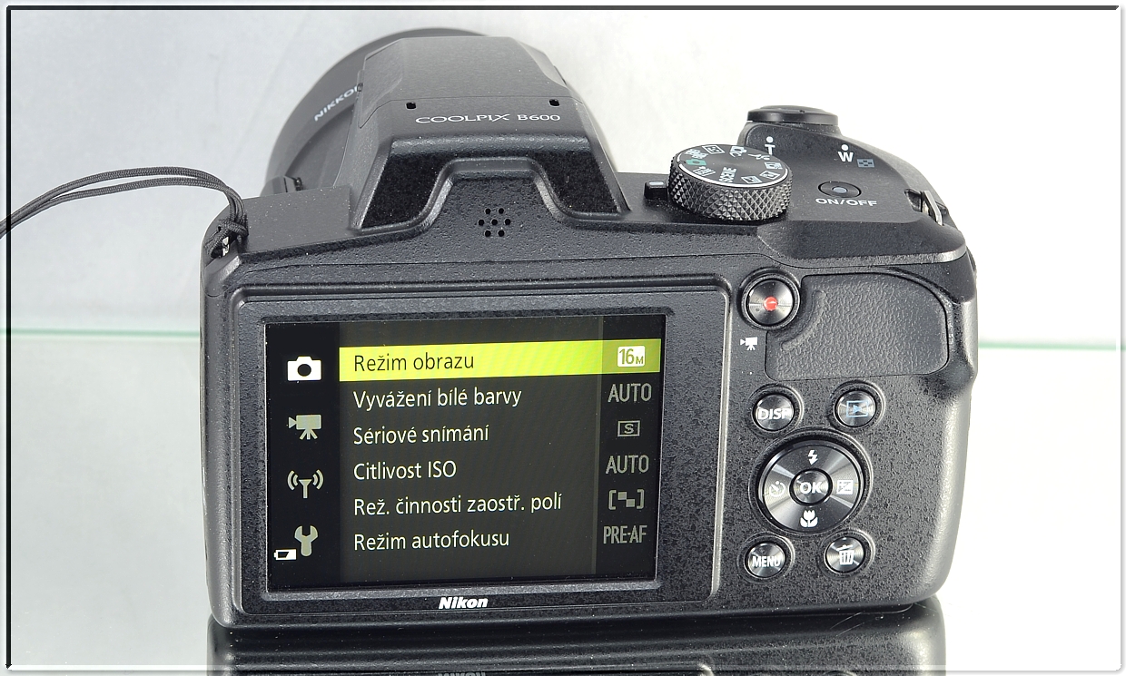 NIKON COOLPIX B600 Ergonomicky řešené tělo fotoaparátu, podpořené postranním madlem, které bylo přepracováno pro ještě lepší držení, poskytuje jistotu i při fotografování u maximalních hodnot zoomu. Na vršku fotoaparátu je kromě samotné spouště k nalezení i několik otočných voličů, jejichž prostřednictvím lze nastavit korekci expozice a konkrétní režim fotografování. Pohyb v menu přístroje je intuitivní a pokud jste již měli možnost fotografovat s fotoaparáty značky Nikon, nezpozorujete výraznější rozdíl. Často používané funkce jsou k dispozici na dosah prstů prostřednictvím voliče expozičních režimů a rozsáhlé vybavení usnadňuje dosažení působivých Full HD videosekvencí (1080/60i/30p) a vynikajících snímků.