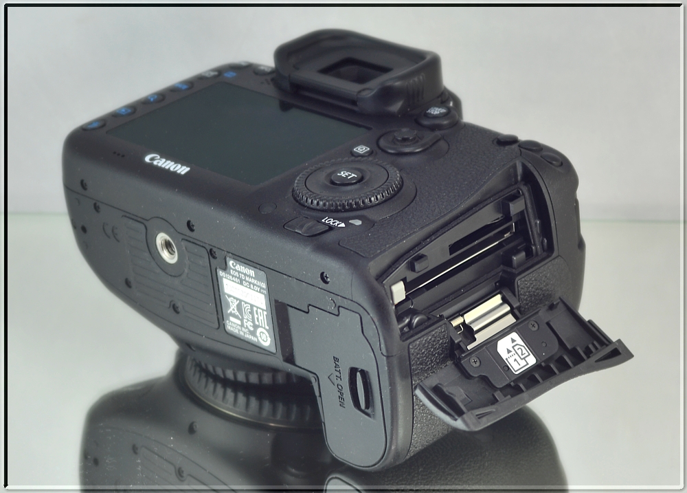Fotoaparát EOS 7D Mark II je vybaven dvěma sloty pro paměťové karty, které umožňují automatické zálohování souborů během fotografování a rozšiřují úložnou kapacitu.