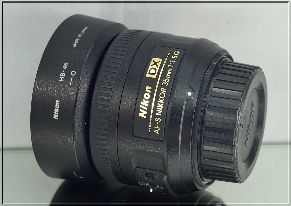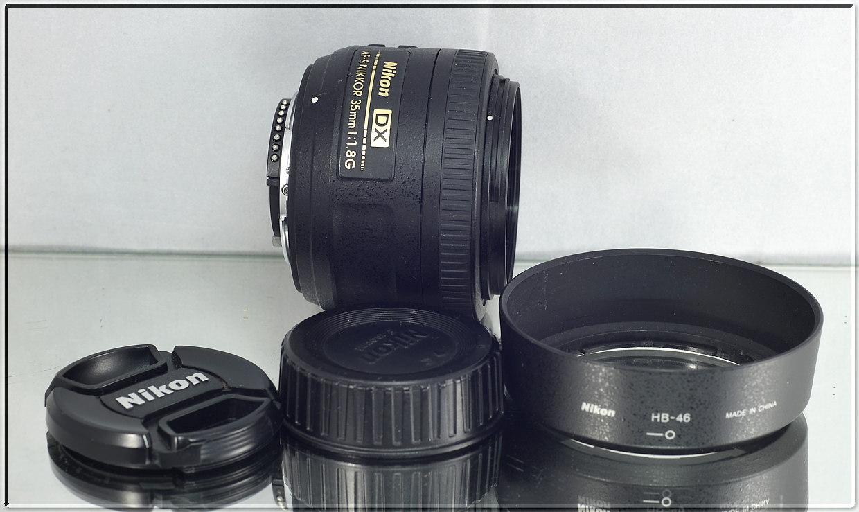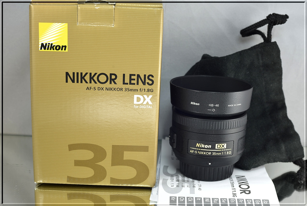 Nikon AF-S DX NIKKOR 35 mm f/1,8 G. Objektiv vhodný ke všem digitálním zrcadlovkám Nikon formátu DX, kde díky své vysoké světelnosti f/1.8 a ohniskové vzdálenosti 35 mm (52,5 mm ekv. 135) nahrazuje základní objektiv. Ten má stejnou perspektivu jako lidské oko a skvěle se hodí k portrétování osob s rozostřeným pozadím, kreativní práci s hloubkou ostrosti a k fotografování za nízké hladiny osvětlení (klasicky koncerty). Tiché ostření ultrazvukovým motorem SWM přímo v objektivu dovoluje jeho bezproblémové použití i se zrcadlovkami Nikon základní řady.