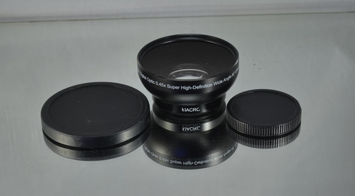širokoúhlý a makro objektiv z pravého skla. Kompenzační faktor: 0,45x. Vyrobeno ze slitiny hliníku a hořčíku se značkovou optickou vrstvou (MC). Tento širokoúhlý objektiv je vybaven odnímatelným makro objektivem pro detailní záběry zblízka. Širokoúhlý nástavec zkracuje ohniskovou vzdálenost objektivu a rozšiřuje obrazovou plochu.