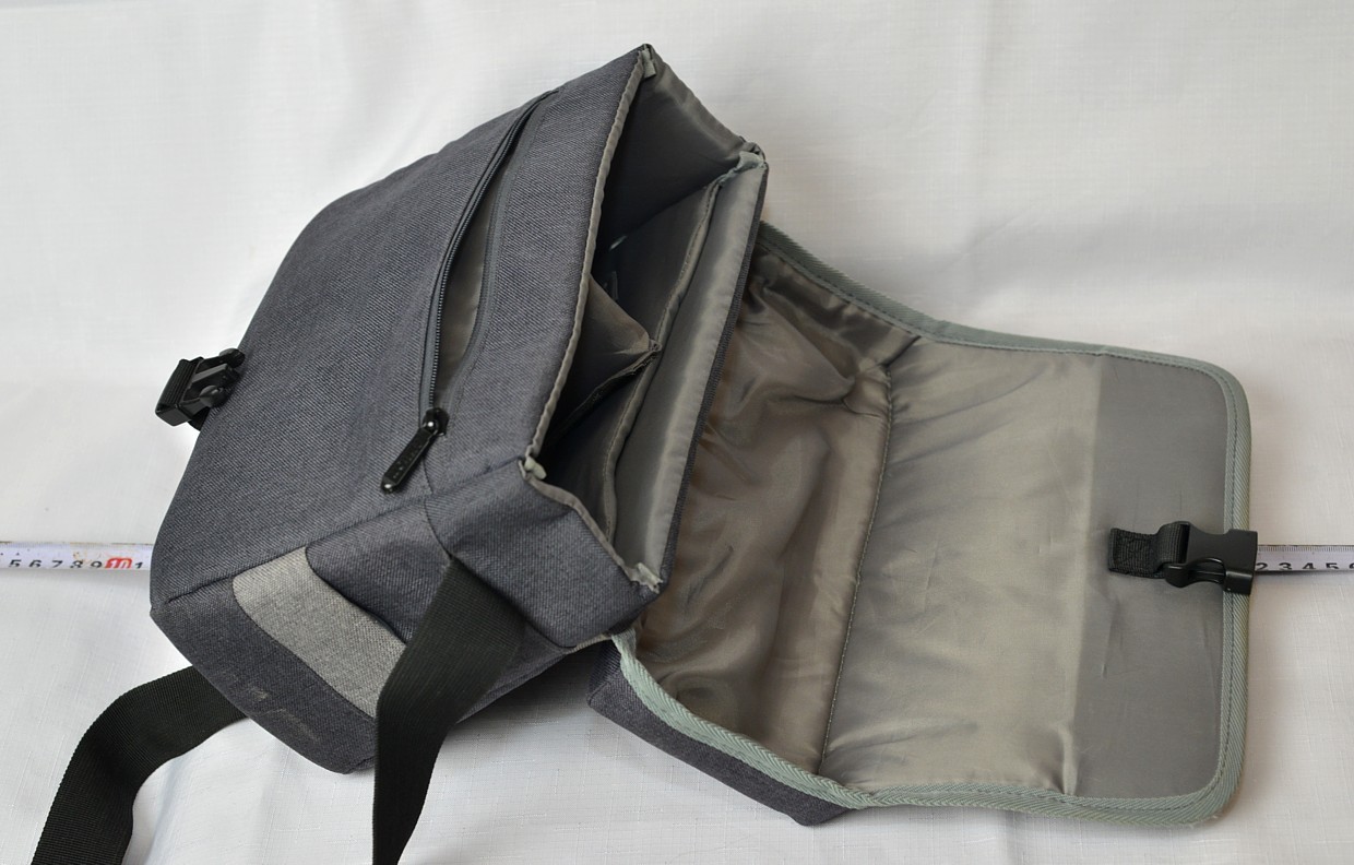 Vnitřní kapsa s rozměry 26 × 19 × 7 cm umožňuje pojmout zrcadlovku, objektiv a blesk.