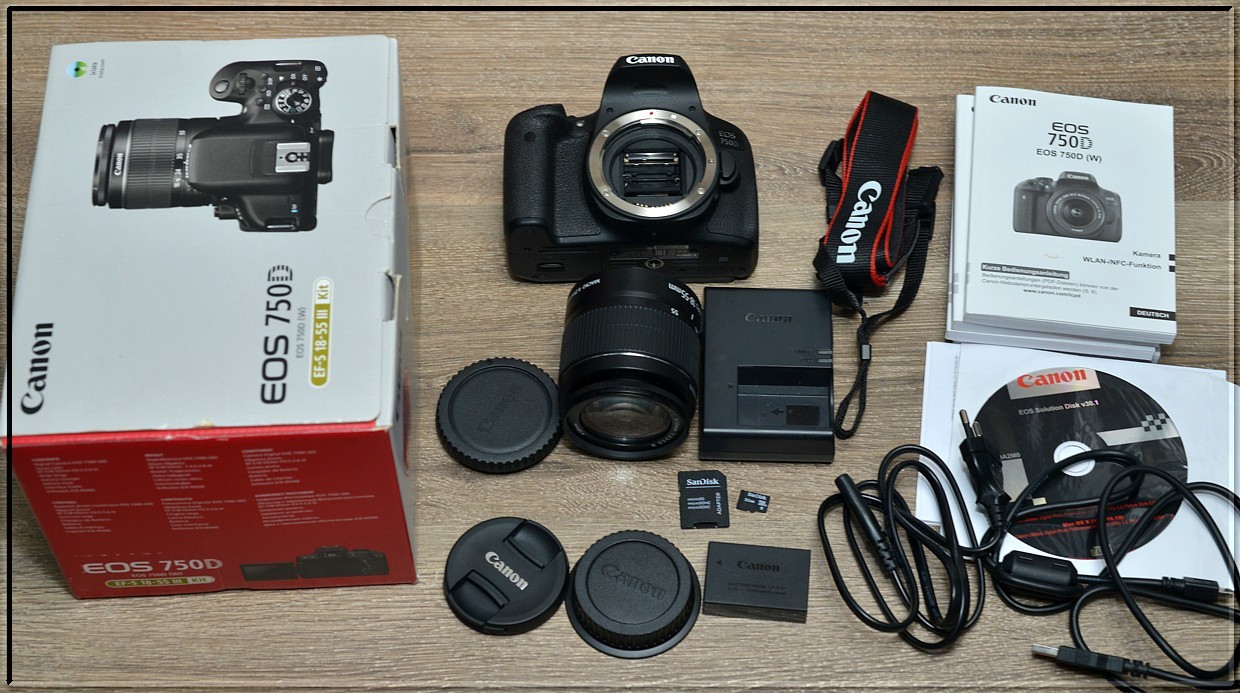 Canon EOS 750D + Objektiv Canon EF-S 18-55mm III **APS-C 24MPix CMOS*Full HD Video 1920 x 1080*WIFI/NFC** 👍1700 Exp.