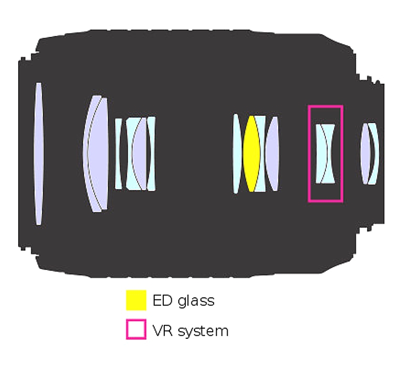 Systém redukce vibrací (VR) umožňuje flexibilnější fotografování z ruky a dovoluje využívat až o 3 stupně delší časy závěrky, než při práci bez redukce vibrací. Ultrazvukový zaostřovací motor Nikon SWM zaručuje rychlé, přesné a extrémně tiché zaostřování. Optický člen z ED skla a asférický optický člen pro minimalizaci projevů barevné vady, astigmatismu a další optických vad zobrazení při současném zajištění vysokého rozlišení a kontrastu.