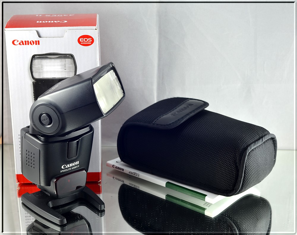 Canon Speedlite 430EX II je vylepšenou verzí výkonného externího blesku se směrným číslem 43. Je o 20% rychlejší, tišší a má novou kovovou patici a může být použit jako podřízený bezdrátový blesk. Má funkci pomocného zaostřovacího světla, má výklopnou a natáčecí hlavu blesku, pokrývá rozsah 24-105mm. Taktéž má funkci vysokorychlostní synchronizace.