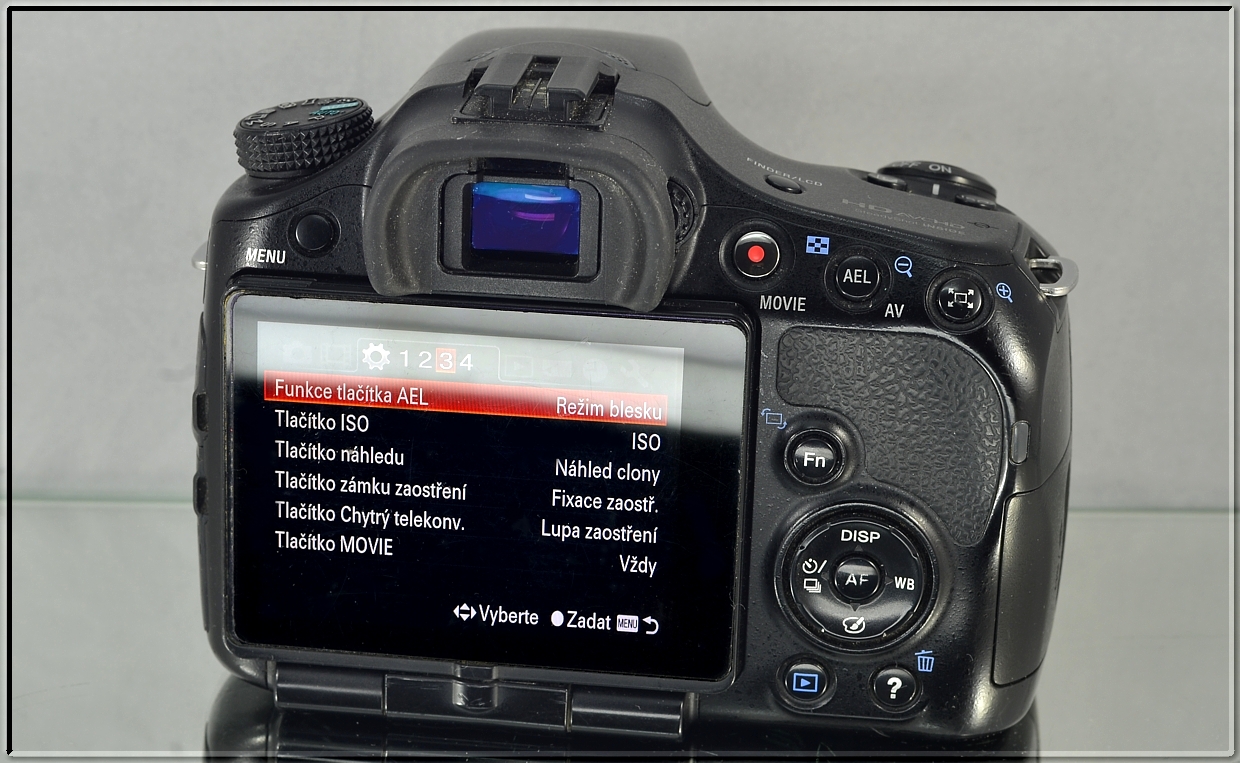 # Tlačítka s možností přizpůsobení - Úlohy tlačítek AEL, ISO a AF/MF lze změnit pro rychlý přístup k některé z 24 funkcí.