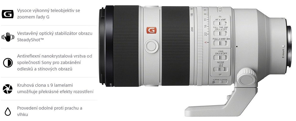 Technické informace zde na adrese : https://www.sony.cz/electronics/fotoaparaty-objektivy/sel70200g