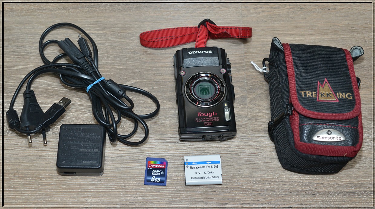 Součástí aukce je: kamera, USB kabel, nabíječka, baterie, poutko, 8GB paměťová karta, pouzdro... . (1. fotka)