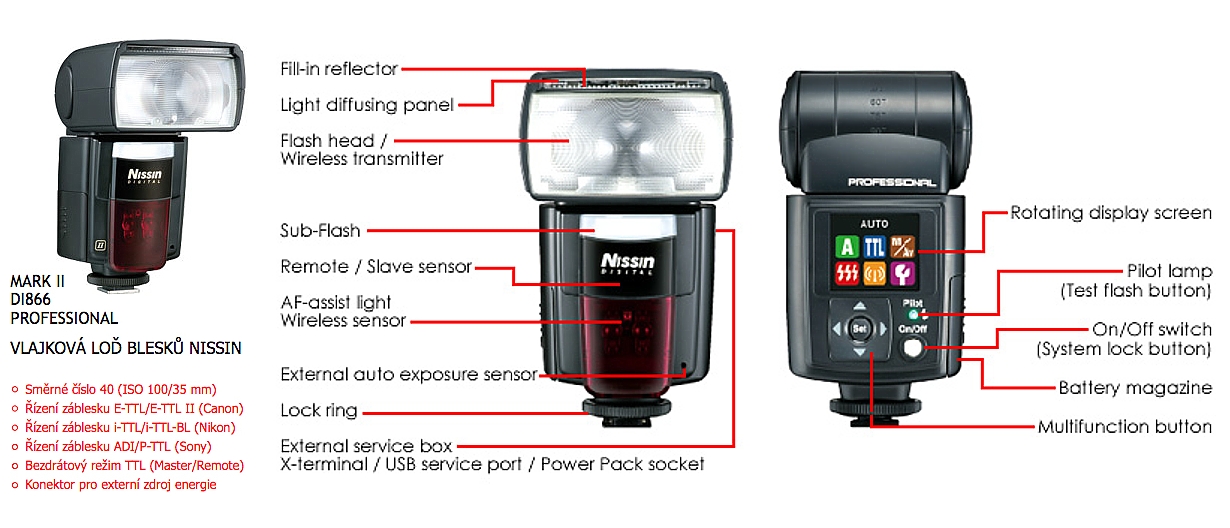 Technické informace zde na adrese: https://www.fotoskoda.cz/nissin-blesk-di866-mark-ii-speedlite-pro-nikon/
