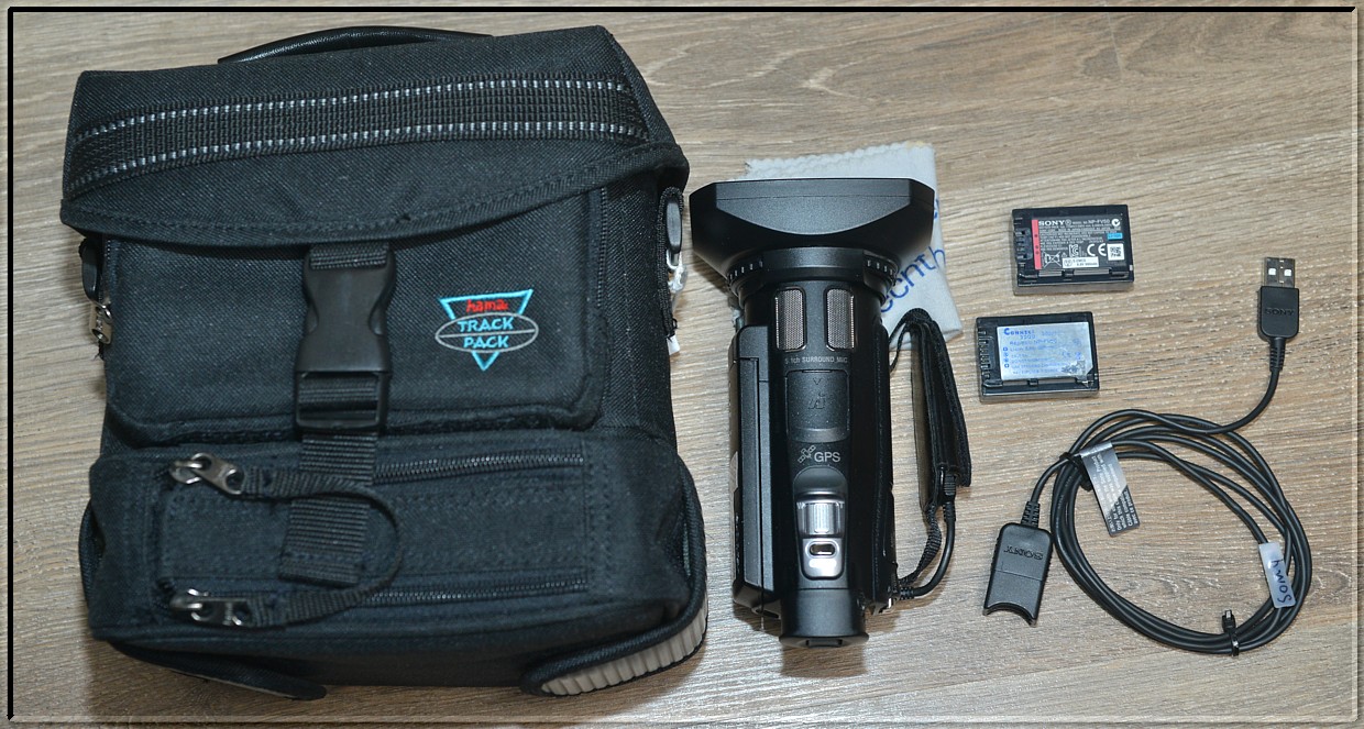 Součástí aukce: Camcorder, 2x baterie, usb nabíjení kabel, fotobrašna... (1. fotka).