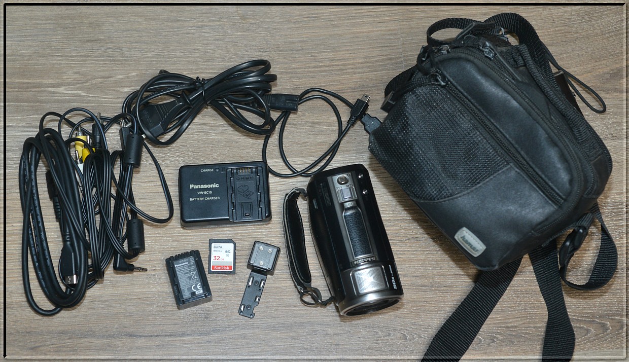 Součástí aukce: Camcorder, baterie, nabíječka, 32 GB paměťová karta, fotobrašna... (1. fotka)