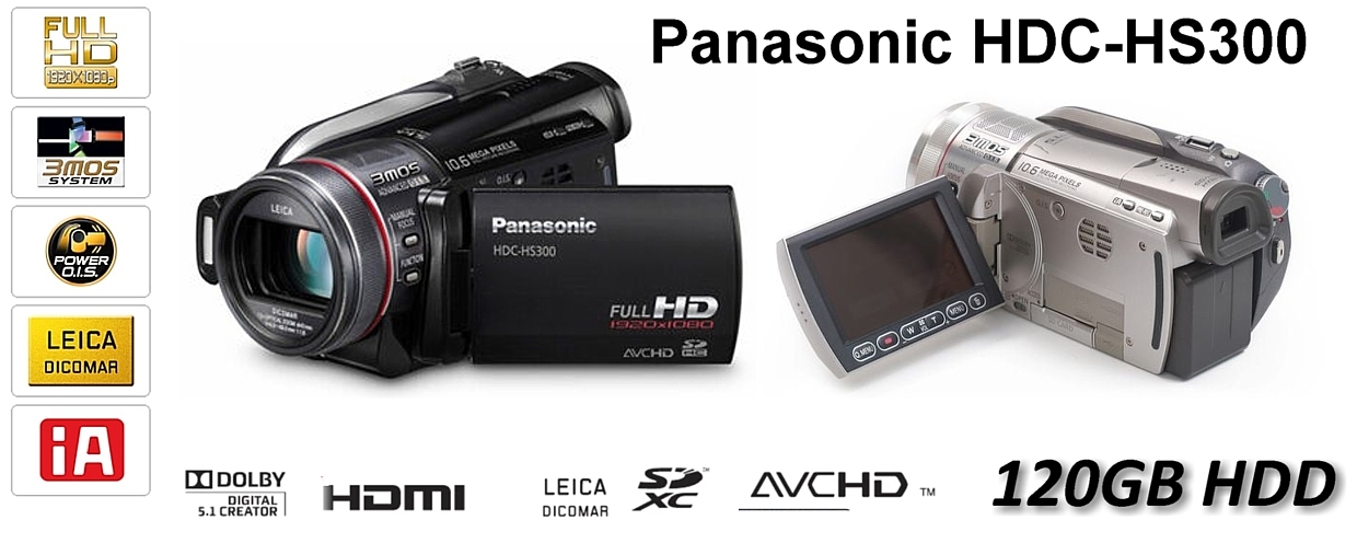 Panasonic HDC-HS300 *videokamera*120GB pevný disk*3MOS*Full HD Video 1920x1080/50i*12x Op. zoom*O.I.S.*