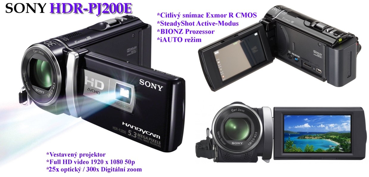 Sony HDR-PJ200E **videokamera s vest. projektorem*Full HDV 1920 x 1080/50p AVCHD-Format*25x opt. zoom*fotobrašna*