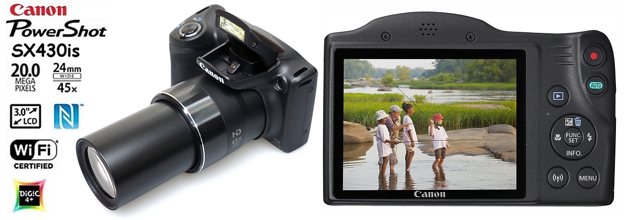 Canon PowerShot SX430 IS **ultrazoom*1/2,3" CCD 20 MPix*45 x op ZOOM 24–1080 mm*HDV 720p*WiFi/NFC*fotobrašna*