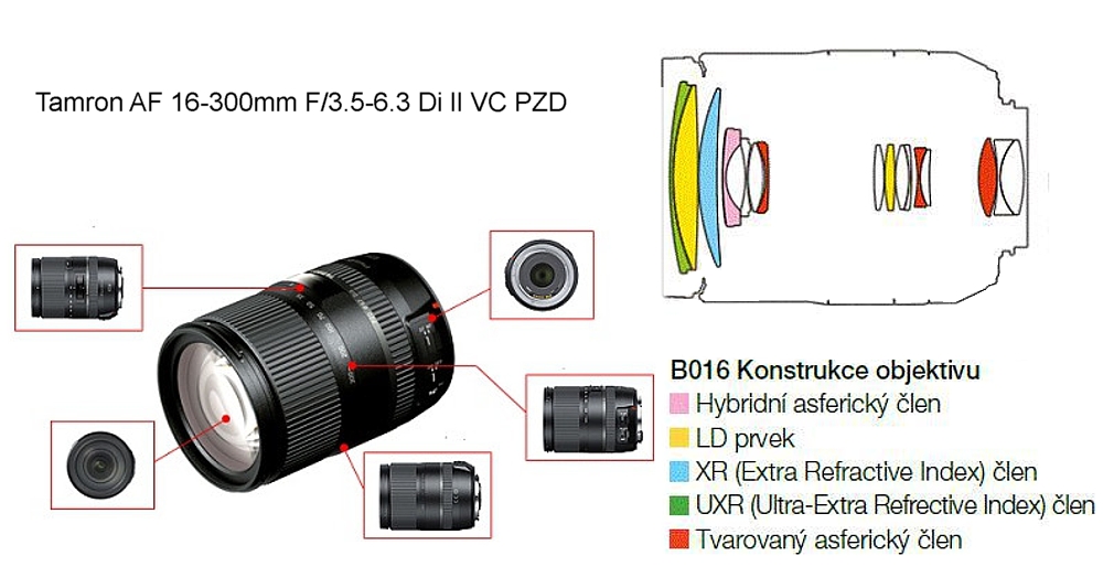 Možnost využití ultra-široké škály ohniskových vzdáleností dělá z objektivů VŠE V JEDNOM extrémně všestranný fotografický nástroj. Nyní Tamron nastavuje opět zcela nový standard v této kategorii s novým revolučním objektivem pro digitální zrcadlovky s čipem APS-C a 18,8× přiblížením. Jediný objektiv pokrývá obrovskou ohniskovou vzdálenost od širokých 16mm až po 300 mm a také makro režim. Spojuje nejnovější technologie konstrukce optiky – včetně použití asferických prvků a nově vyvinutých členů s více vrstvou povrchovou úpravou pro dosažení jasných a ostrých snímků a to vše ve velice kompaktním těle. Vaše možnosti kreativity budou díky tomuto průlomovému objektivu nekonečné.