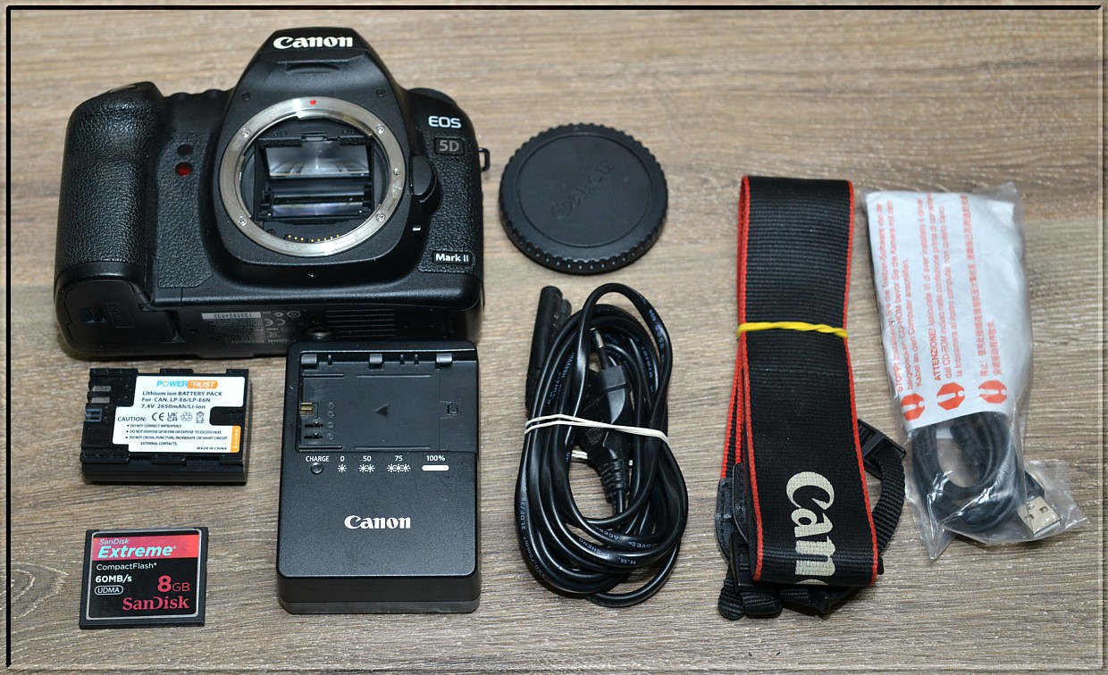 Canon EOS 5D Mark II je dlouho očekávaný profesionální nástupce modelu EOS 5D. Canon EOS 5D Mark II přináší nový CMOS snímač s rozlišením 21.1MPix o velikosti kinofilmového políčka, odolnost proti prachu, možnost natáčení videa v HD rozlišení a mnohé další. V současnosti je Canon EOS 5D Mark II obrazově nejvýkonnější fotoaparát od Canonu, takže jej ocení i zkušení profesionálové.