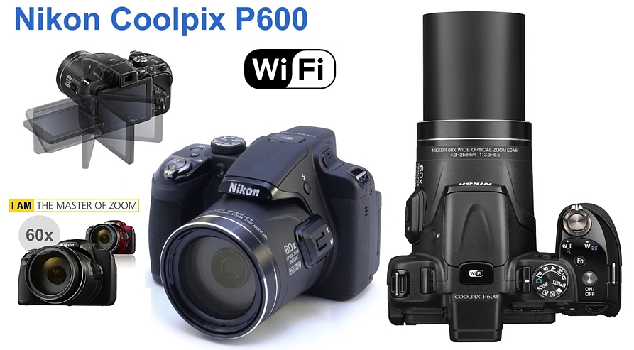 Nikon Coolpix P600 je kompaktní ultrazoom s rozlišením 16 MPix a optickým zoomem 60x. Má velký výklopný dotykový displej a mechanickou stabilizaci obrazu. Natáčí FullHD video a vestavěnou Wi-Fi. Je vybaven manuálními režimy (P, A, S, M) a řadou scénických režimů.