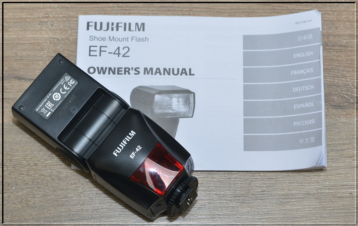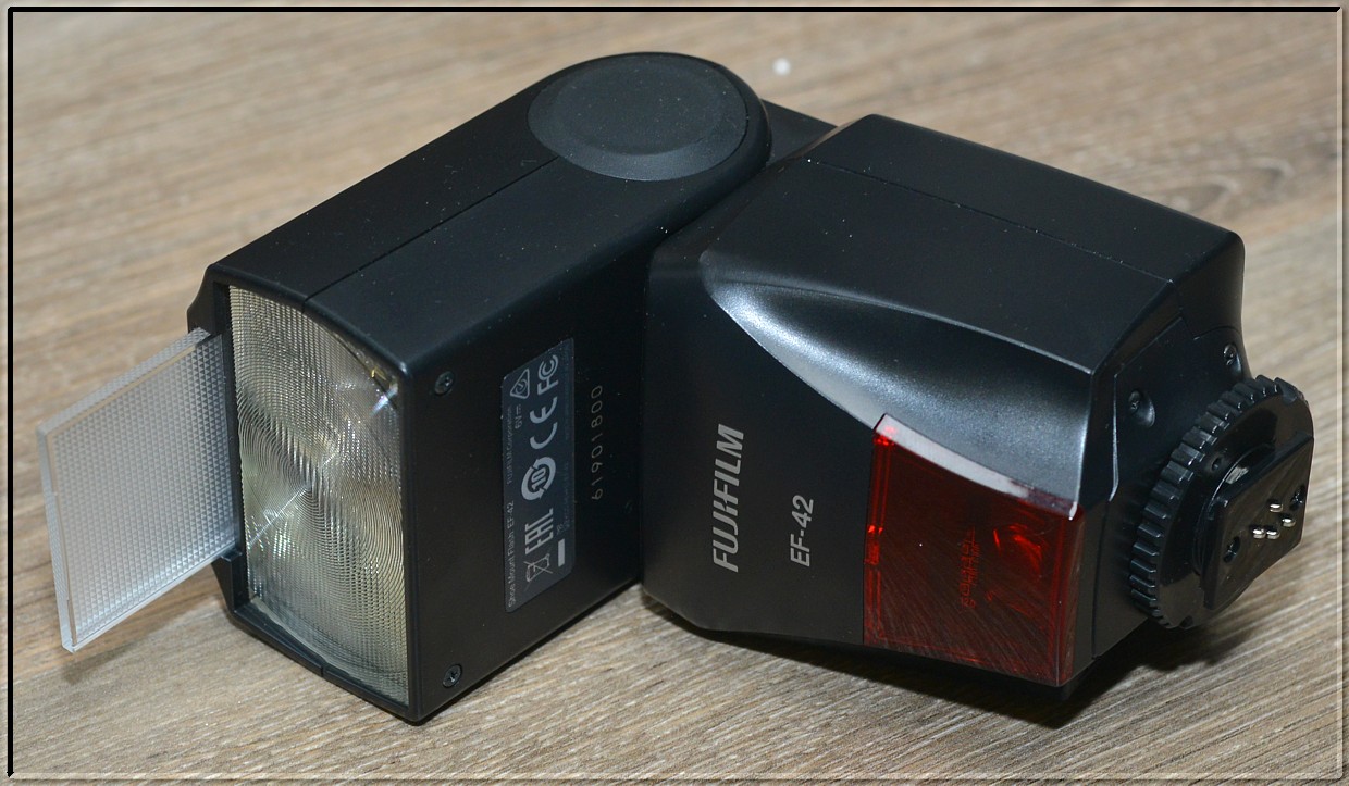Systémový blesk určený pro fotoaparáty značky Fujifilm. Výkonný přídavný blesk Fujifilm EF-42 je vybaven velkým stavovým displejem i AF diodou a dokáže komunikovat s fotoaparátem prostřednictvím TTL protokolu* (bere tedy v potaz jak vzdálenost zaostření, tak pracovní clonu, citlivost ISO i expoziční čas) či prostřednictvím manuálního nastavení. Pohyb hlavy blesku je možný v rozmezí 0, 45, 60, 75 a 90° vertikálně a horizontálně až o 180° vlevo a 120° vpravo.