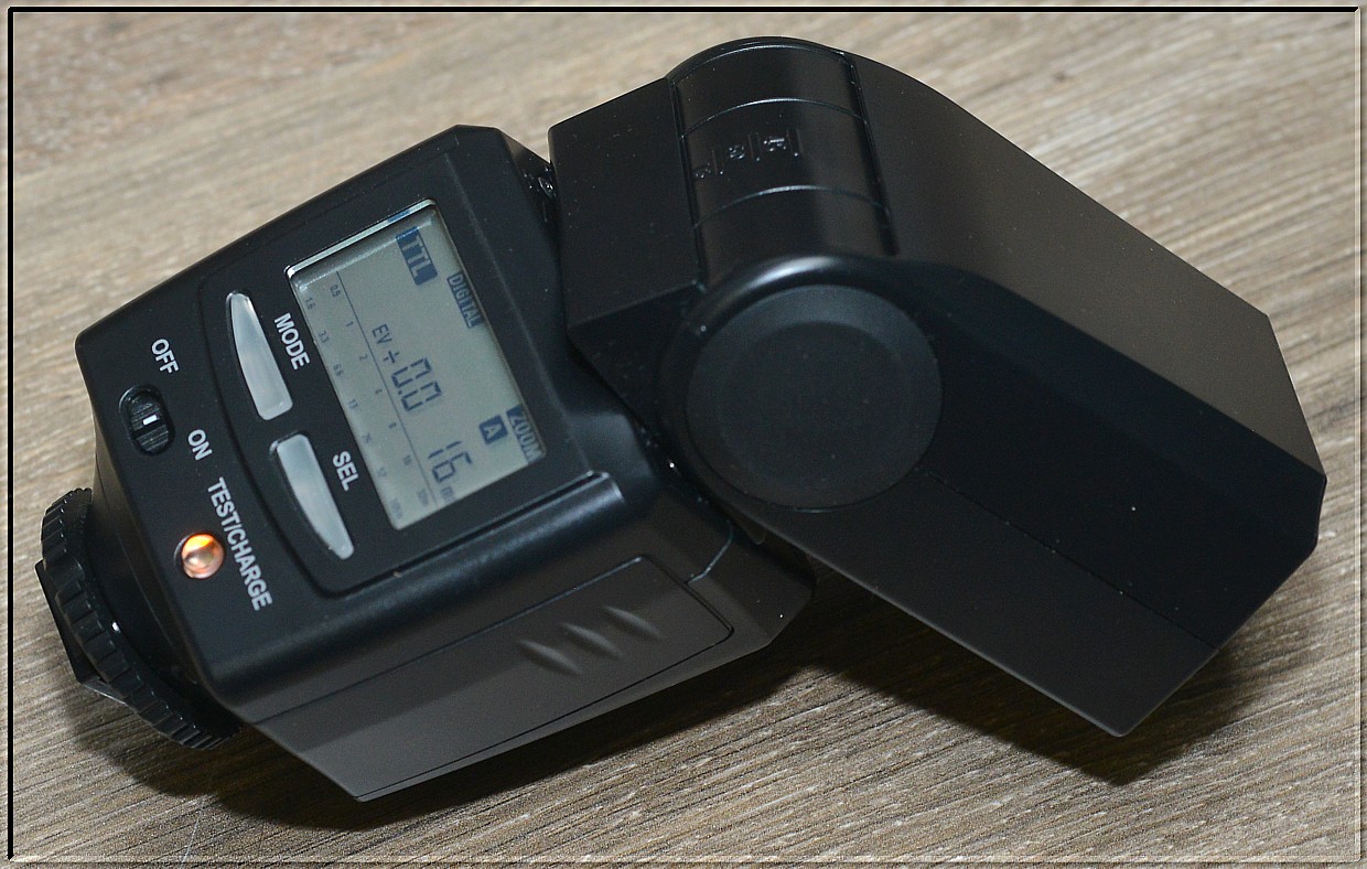 hlavu blesku je možné vyklopit vzhůru v úhlu 90°, otočit o 180° doleva nebo o 120° doprava pro osvětlení nepřímým zábleskem