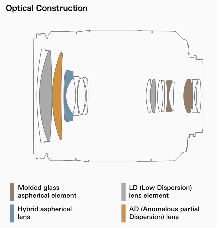 Popis konstrukce objektivu: 16 elementů ve 13 skupinách