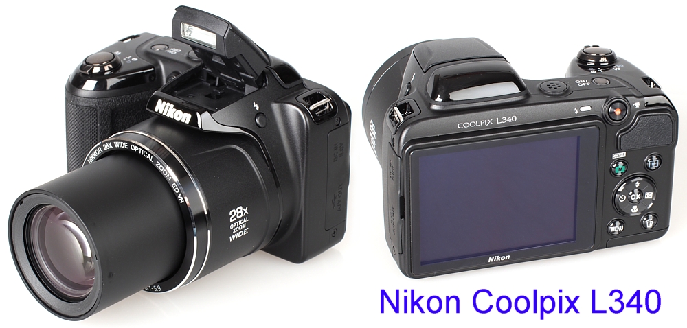 Nikon Coolpix L340 kompaktní fotoaparát s rozlišením 20 MPix a optickým zoomem 28x. Natáčí HD video a je vybaven mechanickou stabilizací obrazu. Napájí se AA bateriemi.
