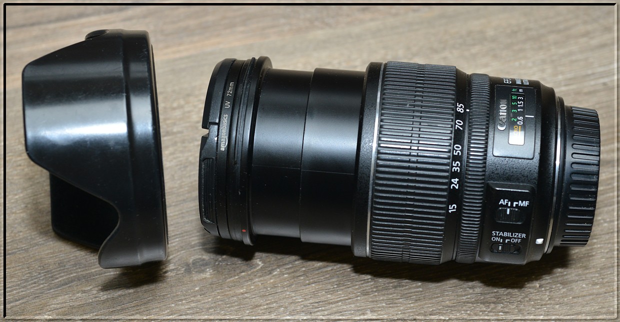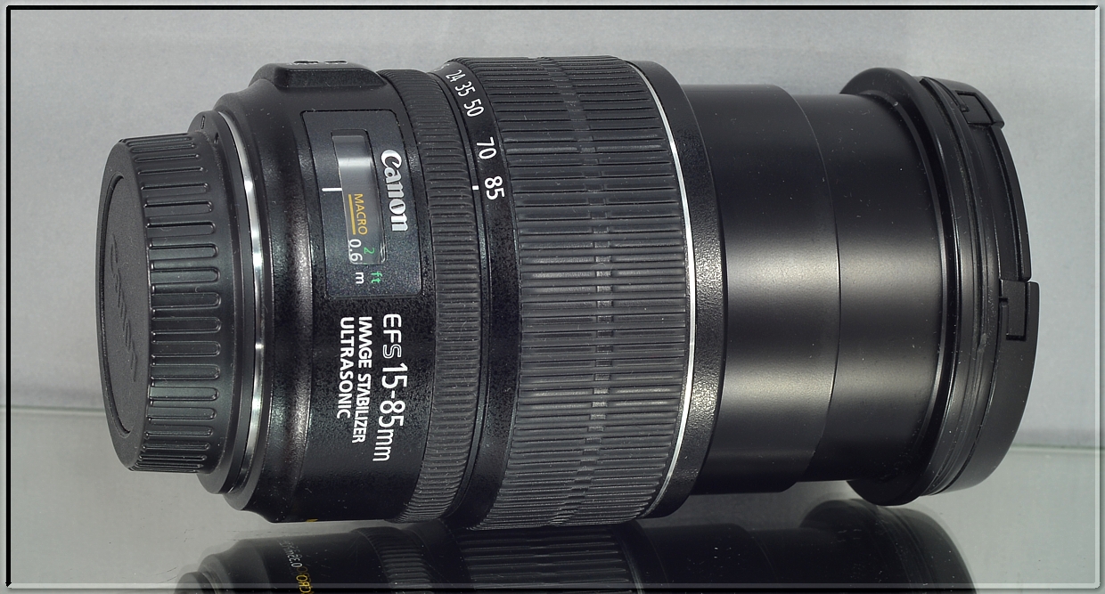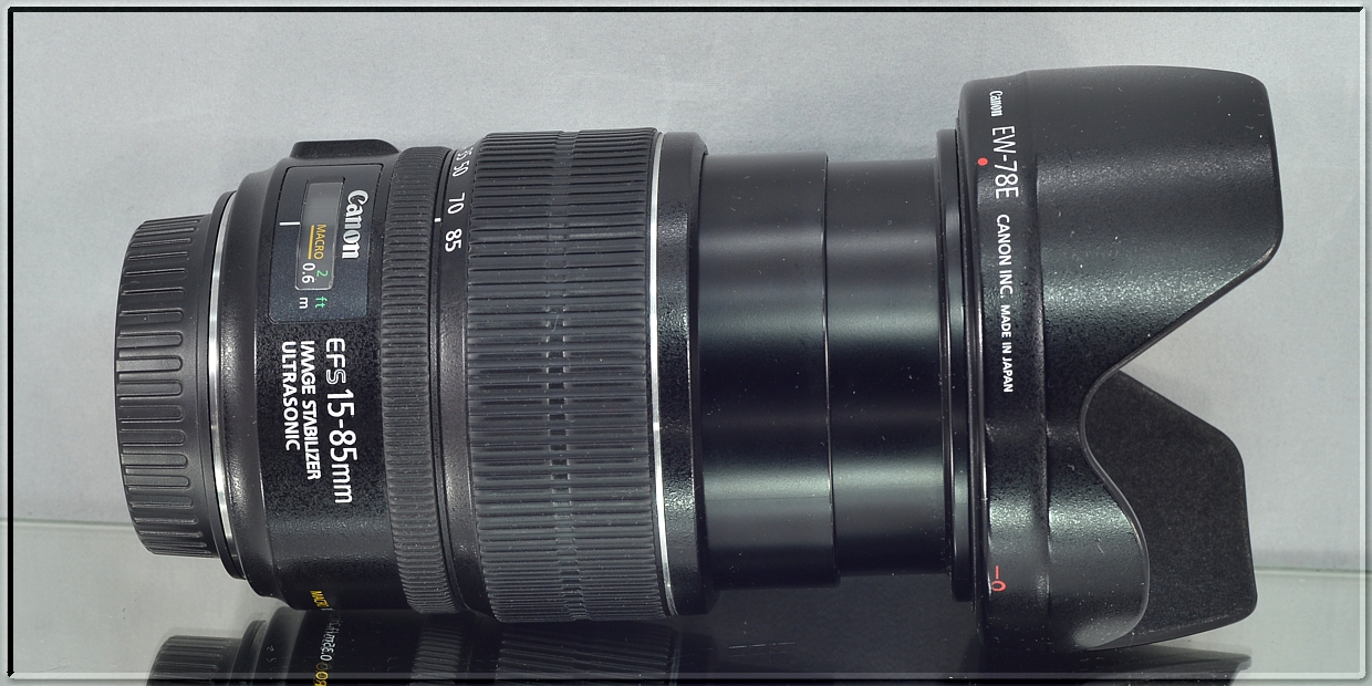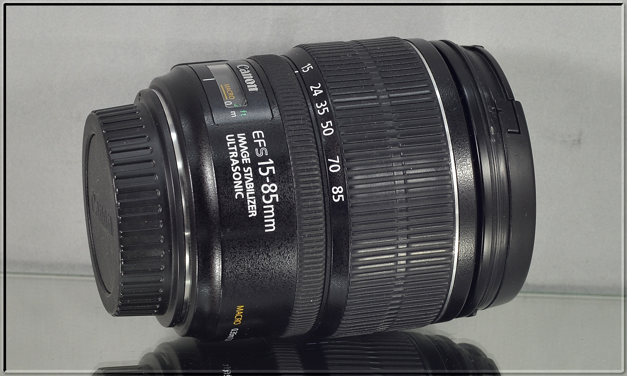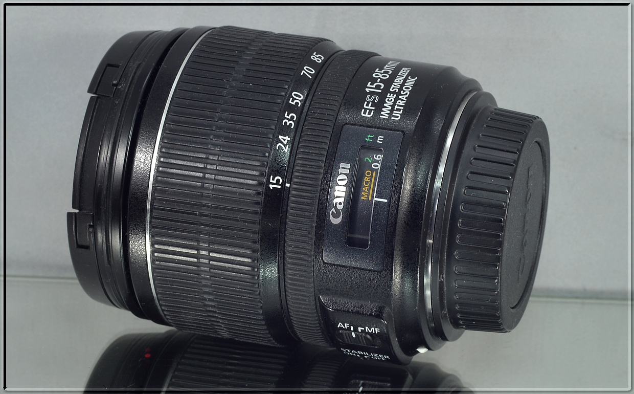 Canon EF-S 15-85 mm f/3.5-5.6 IS USM ve kterém je zkombinován široký rozsah zoomu od širokoúhlého objektivu po teleobjektivu, navíc se 4krokovým stabilizátorem obrazu, poskytuje mimořádný výkon a flexibilitu. Vysoce výkonný, víceúčelový 5,6násobný standardní zoom EF-S s ekvivalentní ohniskovou vzdáleností 24–136 mm