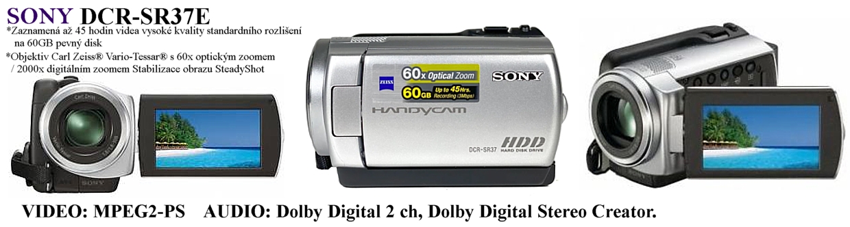 Sony DCR-SR37E *Digitální videokamera*1/8" pokročilý HAD CCD snímač*MPEG2*60x opt. zoom*60GB pevný disk*SteadyShot*