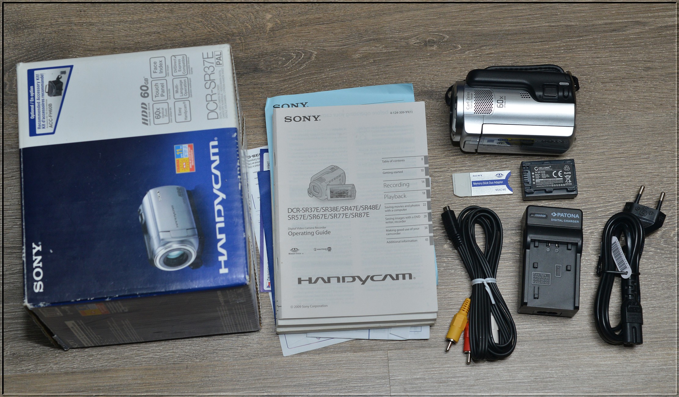 Součástí aukce: Camcorder, baterie, nabíječka... Vše v originál krabici. (1. fotka)