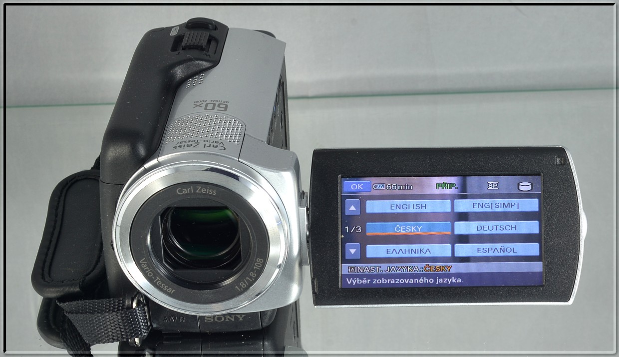 Zaznamená až 45 hodin videa v kvalitě standartního rozlišení. Výkonný objektiv Carl Zeiss s 60x zoomem a zoom mikrofonu. Rychlé spuštění otevřením displeje LCD, stabilizace obrazu SteadyShot a jedinečné zobrazení v kalendáři díky softwaru Picture Motion Browser pro odeslání na web.