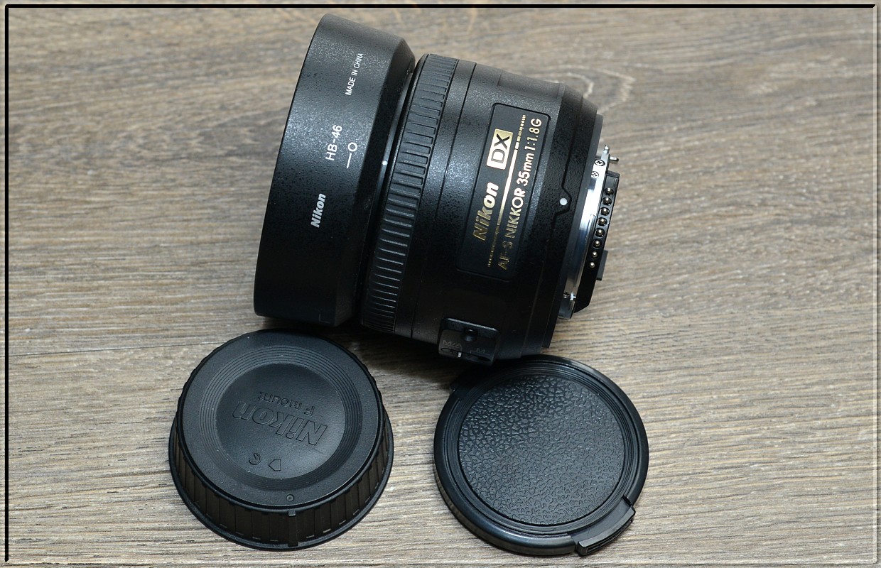 Nikon AF-S DX NIKKOR 35 mm f/1,8 G. Objektiv vhodný ke všem digitálním zrcadlovkám Nikon formátu DX, kde díky své vysoké světelnosti f/1.8 a ohniskové vzdálenosti 35 mm (52,5 mm ekv. 135) nahrazuje základní objektiv. Ten má stejnou perspektivu jako lidské oko a skvěle se hodí k portrétování osob s rozostřeným pozadím, kreativní práci s hloubkou ostrosti a k fotografování za nízké hladiny osvětlení (klasicky koncerty). Tiché ostření ultrazvukovým motorem SWM přímo v objektivu dovoluje jeho bezproblémové použití i se zrcadlovkami Nikon základní řady.