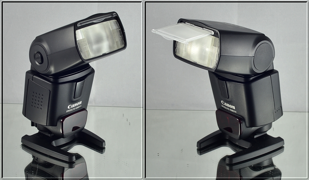 Canon Speedlite 430EX II je vylepšenou verzí výkonného externího blesku se směrným číslem 43. Je o 20% rychlejší, tišší a má novou kovovou patici a může být použit jako podřízený bezdrátový blesk. Má funkci pomocného zaostřovacího světla, má výklopnou a natáčecí hlavu blesku, pokrývá rozsah 24-105mm. Taktéž má funkci vysokorychlostní synchronizace.