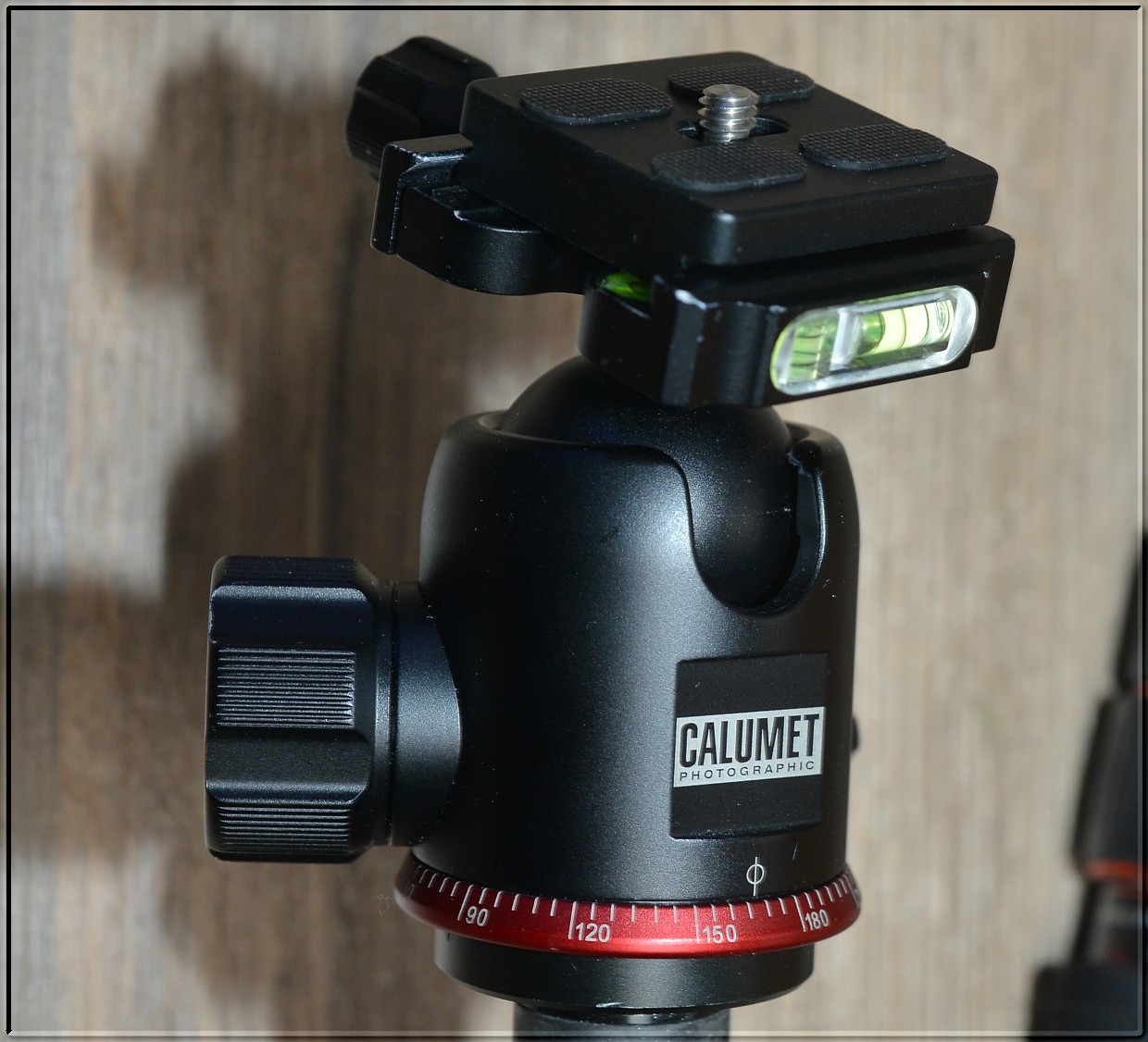 Stativová hlava s vodováhou pro vertikální a horizontální vyrovnání.